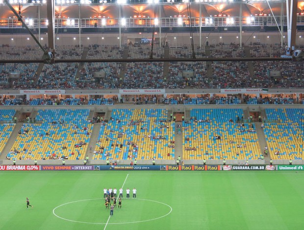 Nos setores que ficavam atrás dos gols, em um total de 43 mil lugares, o Fluminense, mandante do jogo e com contrato assinado com o consórcio, fixou o preço em R$ 60. O resultado foi o visual de grandes clássicos do Maracanã com o colorido habitual das torcidas.