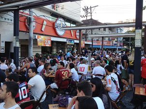 Como a venda de bebidas alcoolicas está proibida nos estádios brasileiros, restou aos torcedores tomar sua cerveja antes da partida começar.