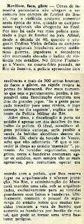 No último Vasco X Flamengo, na quarta feira passada, no Rio de Janeiro, a Polícia aprendeu dois revolveres e mais de 300 armas brancas, de facas a giletes, na prática revista as portas do Maracanã.