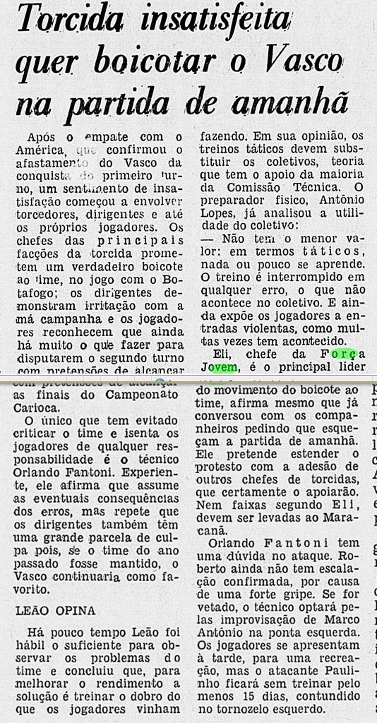 FORÇA JOVEM 1978: TORCIDA QUER BOICOTAR O VASCO AMANHÃ