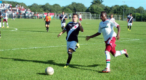 >> O que foi o jogo - Mesmo no campo adversário o Fluminense mandou desde o começo. Com mais posse de bola os tricolores dominavam o Vasco, mas pecavam no último passe e só conseguiram chegar com perigo aos dezenove. Confusão na área cruzmaltina, Daniel chutou, a bola desviou na zaga e saiu pela linha de fundo. Com o jogo concentrado no meio de campo o Flu teve outra oportunidade aos 29 minutos. Gerson cruzou da esquerda para Daniel. O meia ajeitou de calcanhar e o atacante Paulinho bateu em cima do zagueiro Berg. De tanto insistir os tricolores abriram o placar aos 35. Gerson roubou a bola pela direita e avançou. Viu o atacante Felipe pelo meio da área e tocou. O camisa nove com tranqüilidade chutou fora do alcance do goleiro Alexandre. A partir daí a garotada de Xerém diminuiu o ritmo sem que o Vasco pudesse ameaçar a meta defendida pelo arqueiro Lucas Fritz.