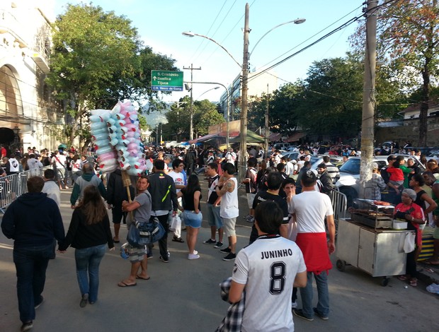 Em tempos de arenas e estádios padrão Fifa, o charme de São Januário ainda faz a diferença. No reencontro do torcedor com o palco que os vascaínos ajudaram a construir nos anos 1920, a festa começou horas antes dos portões serem abertos. Ao redor do antigo estádio, próximo à Barreira do Vasco, torcedores se aglomeravam nos bares e em cada esquina bebendo cerveja da marca de sua preferência e comendo churrasquinhos e até algodão doce, artigo raro em jogos de futebol na cidade e no país que vai sediar a Copa do Mundo de 2014. A expectativa era grande e tinha um nome: Juninho. O maior público do ano em São Januário tinha a ver também com as boas novas - patrocinadores, reforços como Guiñazu, que já sentiu o carinho dos vascaínos no camarote, e até a simpatia por Dorival Junior -, mas era um encontro de três gerações para reverenciar um Reizinho.