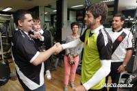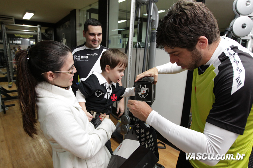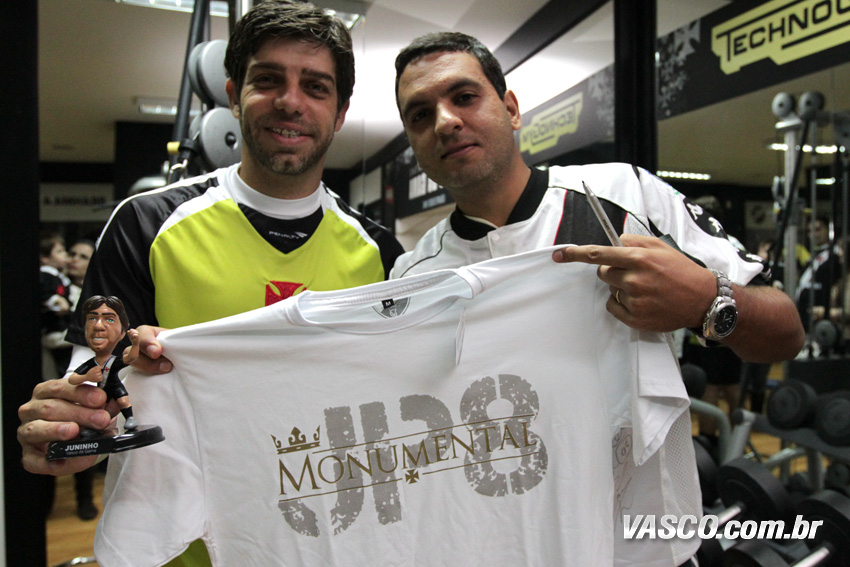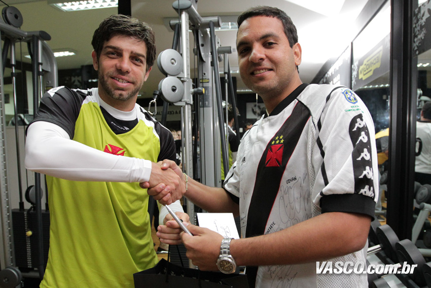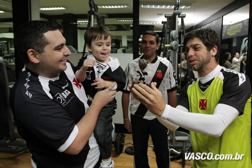 Vencedores do concurso cultural "Para você, o que faz de Juninho o rei da Colina?", o menino Bernanrdo Pereira Cunha Gomes, de dois anos, que foi acompanhado do pai; e Fernando Torres Pereira eram só alegria ao encontrarem o ídolo Juninho, após a vitória de 3 a 2 sobre o Criciúma, no último sábado (27/7), em São Januário. Além do ingresso para assistirem ao jogo, eles ainda ganharam brindes do jogador. A promoção foi mais uma ação do Programa de Sócios do Vasco.