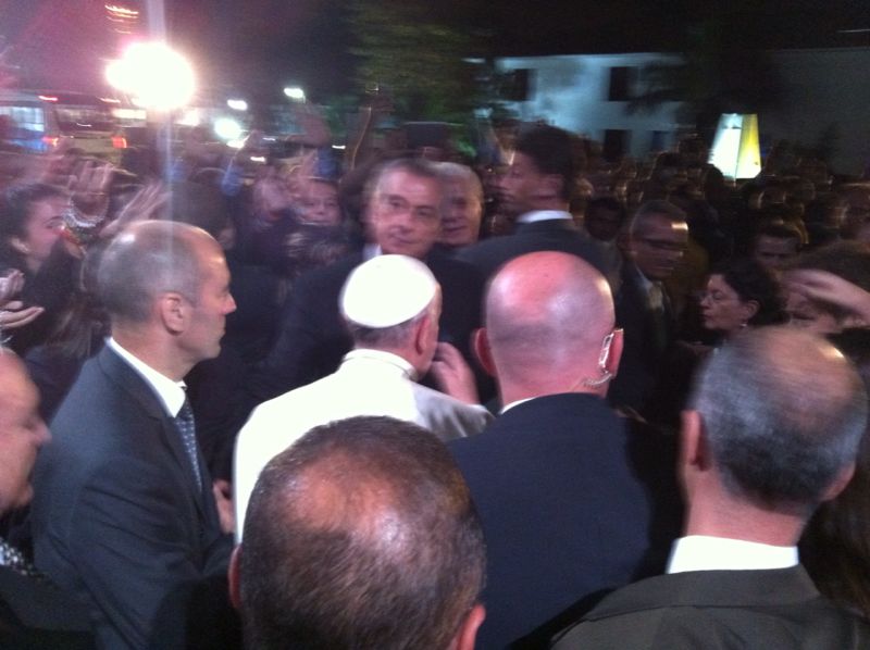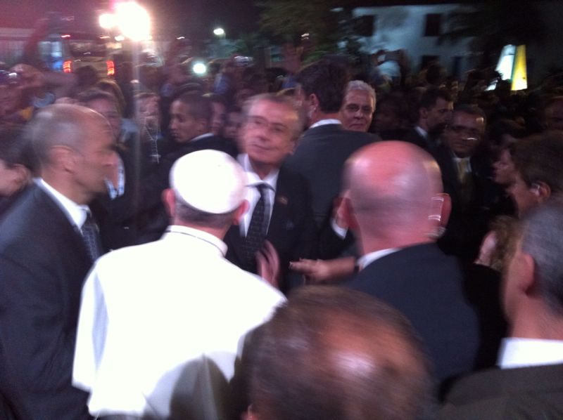 Rapidamente, em poucas palavras, no meio da confusão antes do embarque do Papa Francisco, o presidente conversou com o Pontífice.