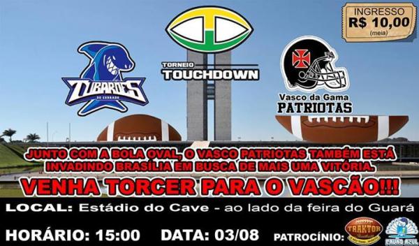 Futebol Americano: Neste sábado às 15h tem Vasco Patriotas x Tubarões do Cerrado em Guará (DF)