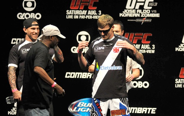Na pesagem do coevento principal, o americano Phil Davis, também ao som dos gritos de “Uh, vai morrer!”, atingiu 93 kg. Adversário do “Mr. Wonderful”, o brasileiro Lyoto Machidatambém pesou 93 kg e foi muito festejado pelo público presente na Arena da Barra.