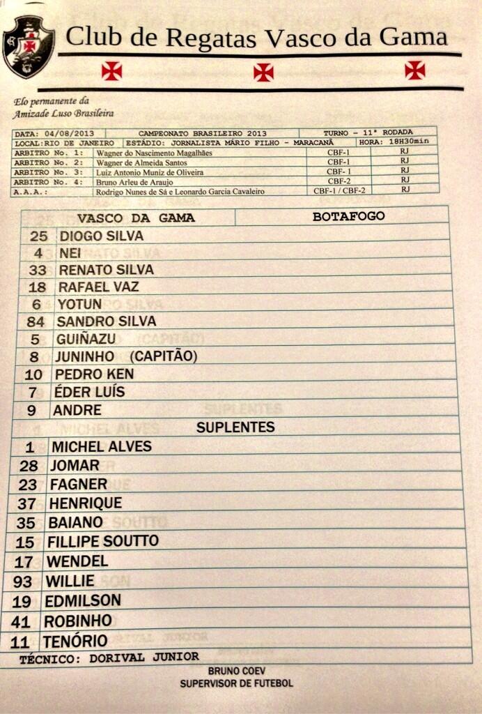 Escalação Oficial do Vasco: pic.twitter.com/93OysYXbTP