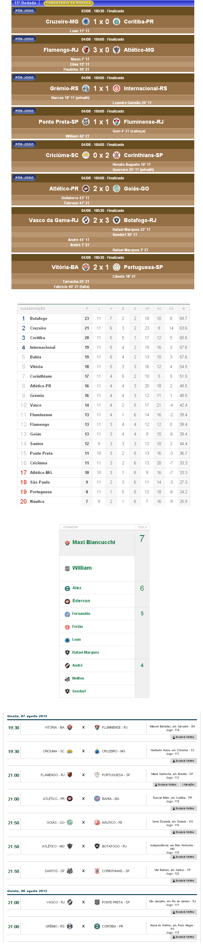 Com 4 gols marcados, André passou a figurar na tábua de artilheiros do campeonato. O goleador máximo é Maxi Biancucchi, do Vitória, com 7 gols.