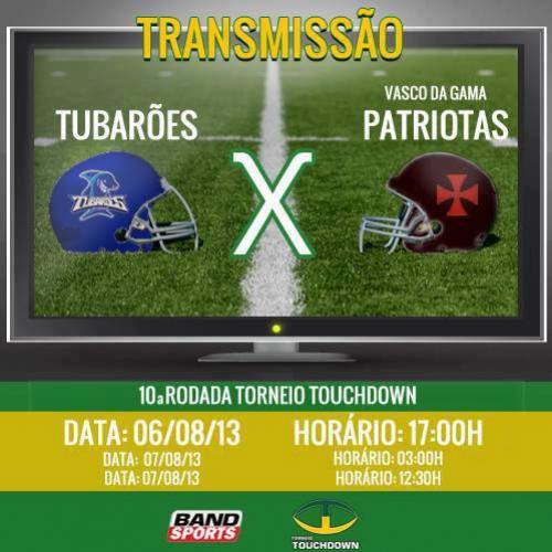 Futebol Americano: Acompanhe Tubarões do Cerrado-DF x Vasco Patriotas, pelo Touchdown, em tempo real