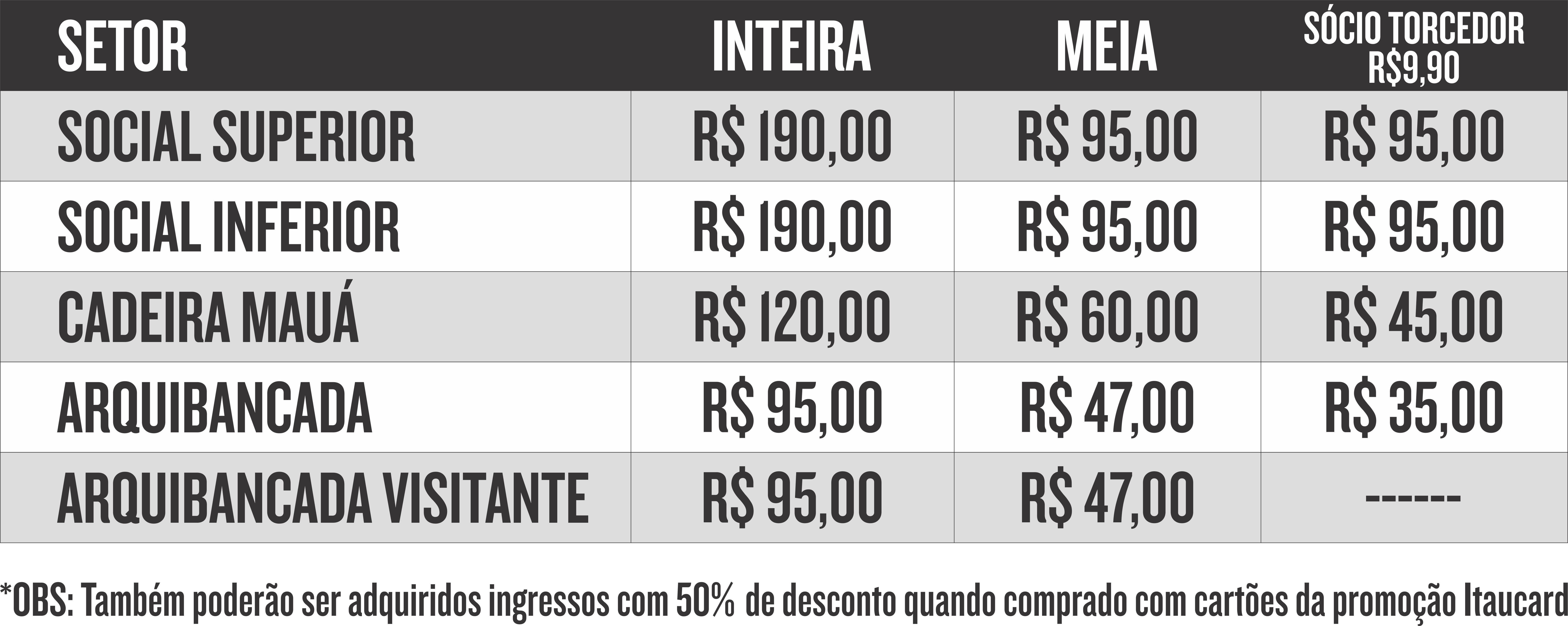 Domingo (11) – principal I e II/Social/Visitante – das 10h até 10 minutos do 2º tempo