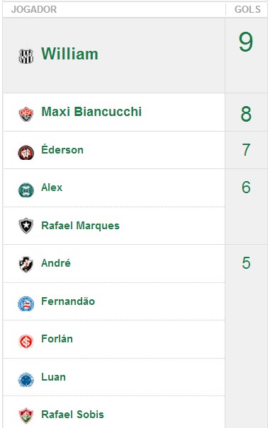 Com 5 gols marcados, André é o 6º colocado na artilharia do campeonato ao lado de mais 5 jogadores. O goleador máximo é William, da Ponte Preta, com 9 gols.