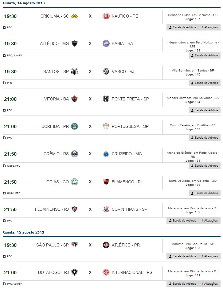 Nem todos os times têm o mesmo número de partidas devido a antecipações e adiamentos de jogos.
