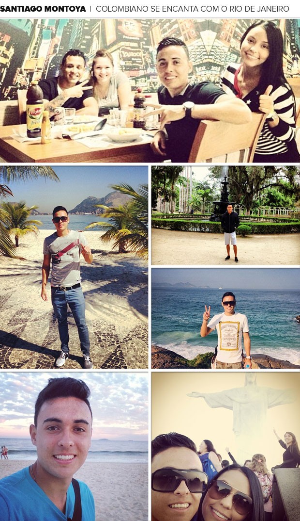 Em seu perfil no Instagram, Montoya exibiu fotos suas em diversos pontos turísticos cariocas, sempre acompanhado da namorada Luisa. Do Cristo Redentor ao Jardim Botânico, passando pelas praias, o colombiano mostrou-se deslumbrado com a beleza natural da cidade.