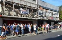 Às 8h, abriram a porta de entrada da sede mas apenas uma pessoa efetuava a venda, em ritmo lento. Isso, mais o fato de que só era permitida a entrada de uma pessoa por vez, elevou o clima de tensão no local e a Polícia Militar teve que intervir para tentar organizar a fila.