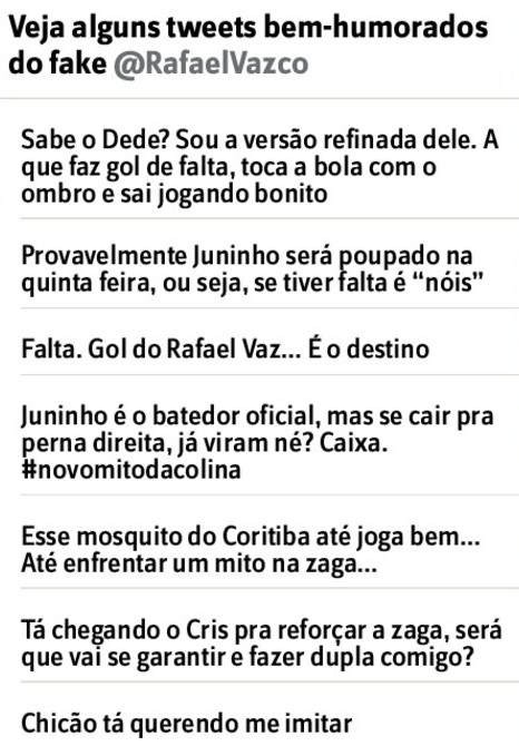 Se Vaz vai mesmo chegar ao nivel do Dedé, seja pela técnica ou pela idolatria da torcida, só o tempo dirá. Mas os vascainos estão empolgados. Nas redes sociais, não é raro ver o zagueiro ser chamado de Novo Mito. Já existe até conta no Twitter ressaltando tal fato, de nome Rafael Vaz Ser Mito (ver mais na página).