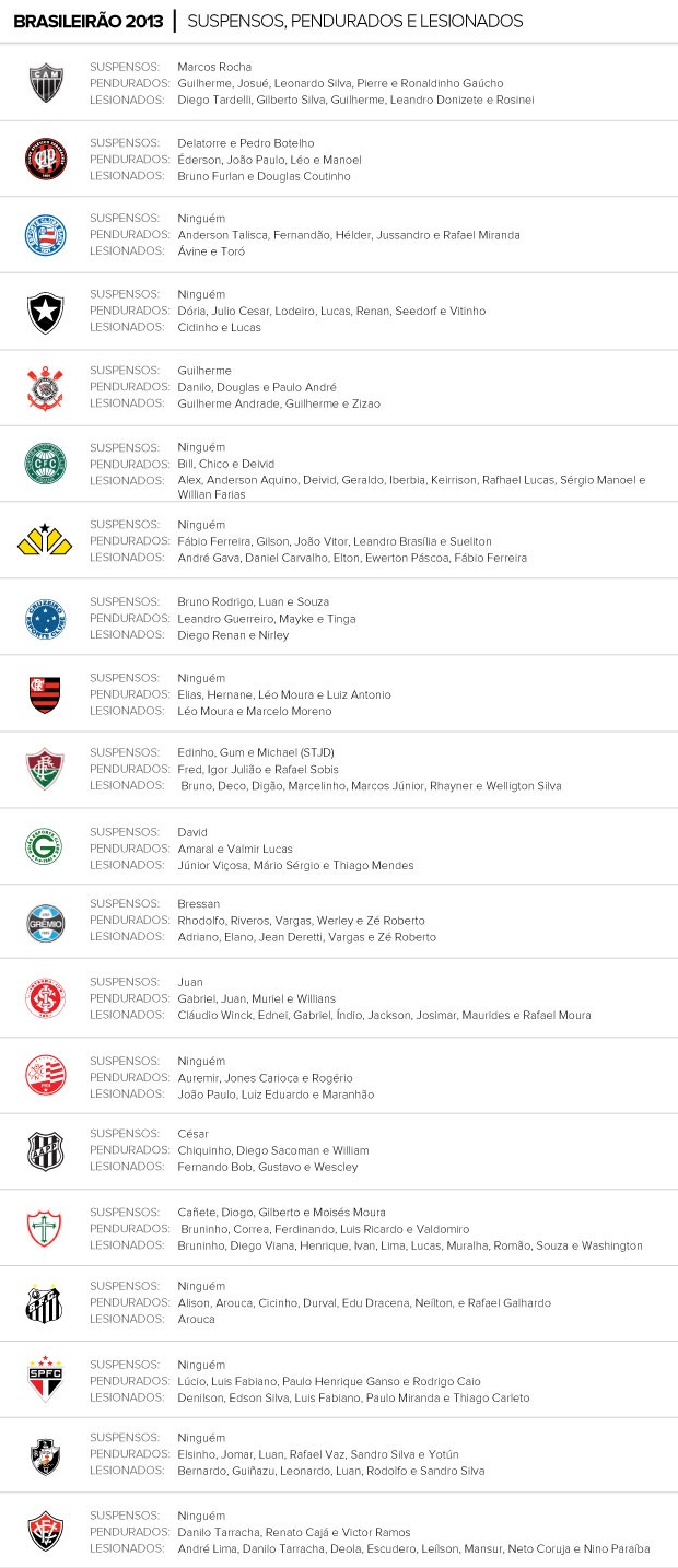 Confira abaixo a lista completa com os lesionados e suspensos da rodada#15: