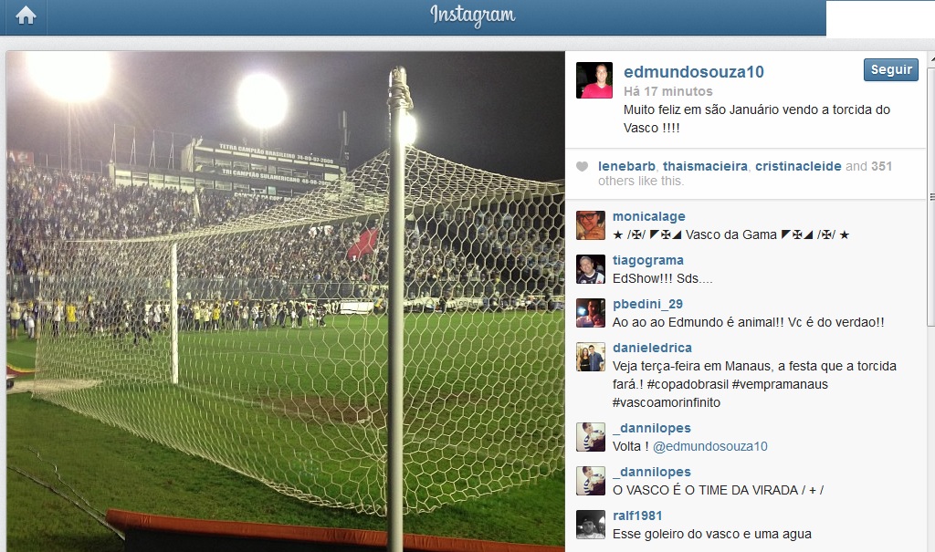 Edmundo Souza @edmundosouza7 Muito feliz em São Janúario vendo a torcida do Vasco !!! http://instagram.com/p/dIojQWNEqd/