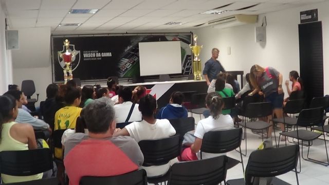 Após a atividade, as atletas se dirigiram a Sala Multimídia Chico Anysio para festejar a vitória na importante competição. Além de confraternizarem, as jogadoras tiveram a primeira das muitas aulas que terão nos próximos meses de língua inglesa.