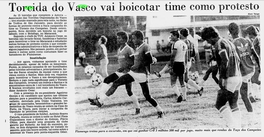 TOV E ASTOVA 1982: TORCIDA DO VASCO VAI BOICOTAR O TIME COMO PROTESTO