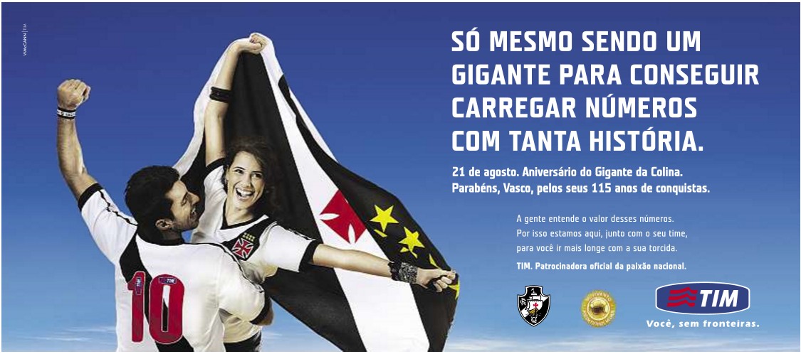 Veja homenagem da TIM ao aniversário do Vasco