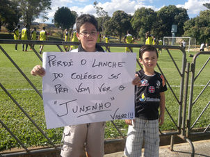 O treino, mais uma vez, foi aberto aos torcedores, que vibraram a cada gol marcado. Dois irmãos, Rafael e Lucas, levaram até um cartaz, com os dizeres: "Pedi o lanche do colégio só para ver o Juninho".