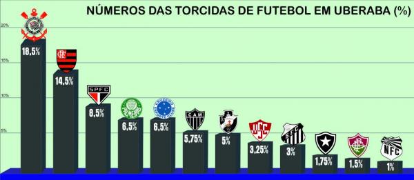 O Corinthians surge como maior torcida da cidade, com 18,5% – eram 20,1% em 2012, movimentação dentro das margens de erro. As mesmas que apontam empate técnico com relação ao Flamengo, segunda maior torcida com 14,5% (15,6% há um ano). Em seguida surgem São Paulo (8,5%), Palmeiras e Cruzeiro (6,5%), Atlético-MG (5,75%), Vasco (5%), Uberaba (3,25%), Santos (3%), Botafogo (1,75%), Fluminense (1,5%) e Nacional (1%). São exatamente as doze agremiações citadas em 2012, com pequenas variações para mais ou para menos.