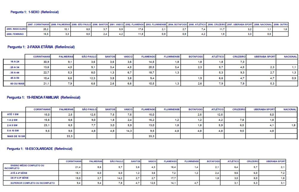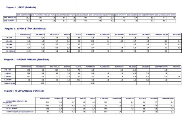 Por renda, destaque para o bom número de vascaínos que auferem entre 5 e 10 salários mínimos (14,3%). Direção oposta à de são paulinos e atleticanos, concentrados em meio aos mais pobres. Por escolaridade, Flamengo (14,1%) e Vasco (12,5%) formam as maiores torcidas de nível superior completo ou incompleto.
