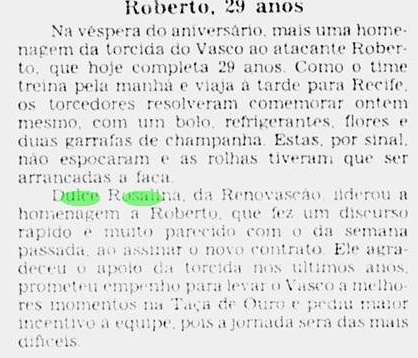 Na véspera do aniversário, mais uma homenagem da Torcida do Vasco ao atacante Roberto, que hoje completa 29 anos.