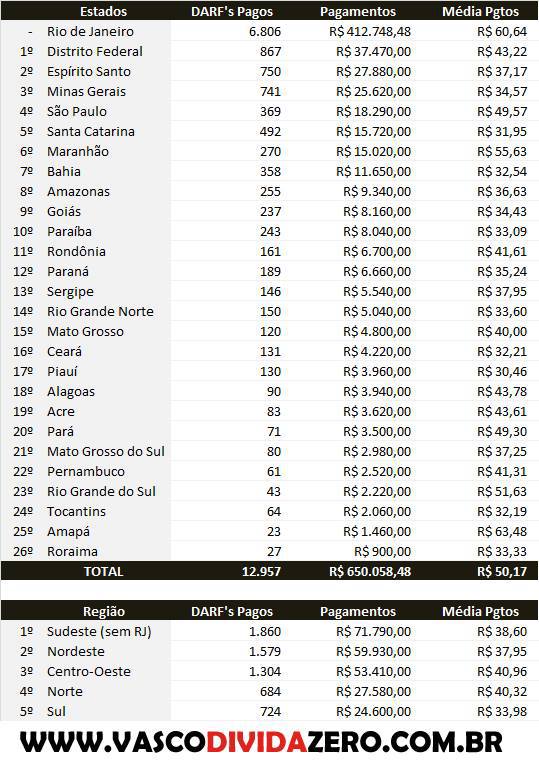 Confira as contrições por Região na Campanha Vasco Dívida Zero @VascoDividaZero!