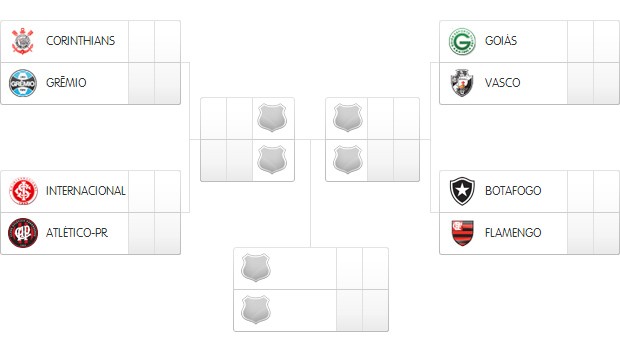 Depois de eliminar o Luverdense nas oitavas, o Corinthians terá pela frente o Tricolor Gaúcho. Entre um jogo e outro, os paulistas vão encarar a Portuguesa (fora), o Bahia (casa), o Atlético-MG (fora), o Atlético-PR (casa), o São Paulo (Morumbi), o próprio Grêmio, em Porto Alegre, no dia 16 de outubro, pela 29ª rodada, e Criciúma, em casa, dias antes da definição da vaga. Os gaúchos terão pela frente nesse intervalo São Paulo (fora), Atlético-PR (casa), Botafogo (fora), Criciúma (casa), Fluminense (fora), o Corinthians (casa) e o clássico contra o Internacional, com mando colorado. Isso três dias antes de encarar o Timão novamente.