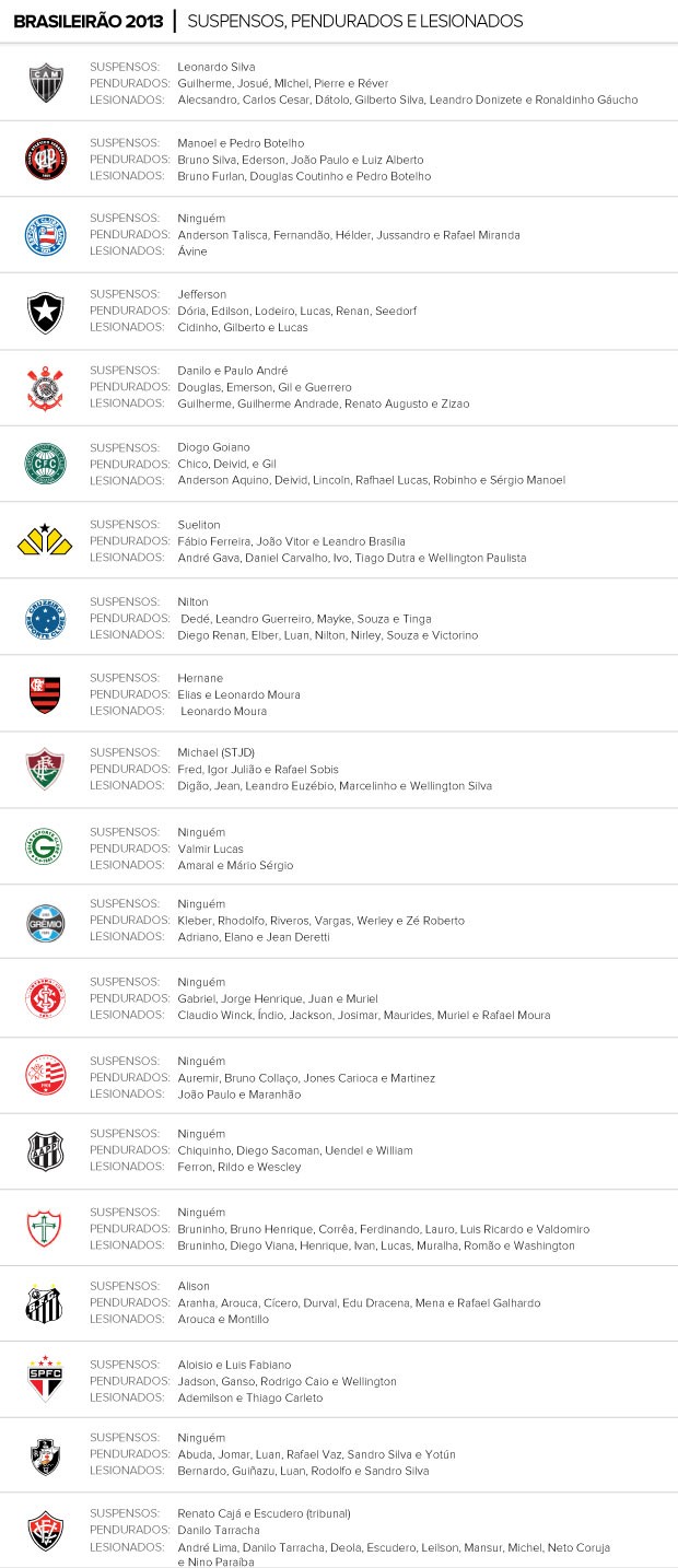 Confira abaixo a lista completa com os lesionados e suspensos da rodada#17: