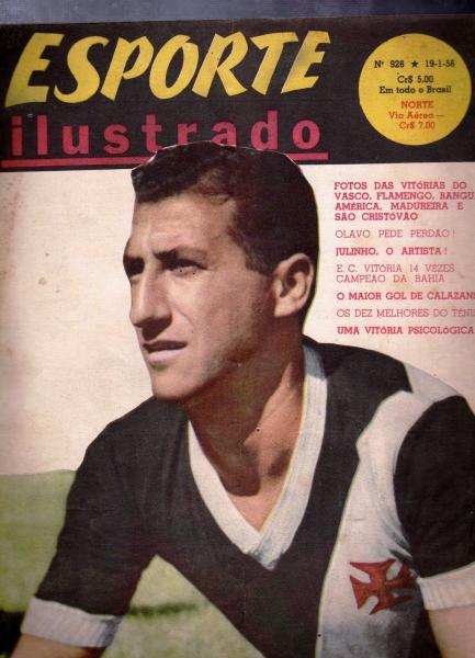 O atacante Pinga foi capa do Nº 928 da revista “Esporte Ilustrado”, de 19 de janeiro de 1956, fotografado por José Santos. Diz o texto da página 3: “Pinga, um dos maiores valores da vanguarda cruzmaltina, cujos tentos preciosos têm contribuído para a obtenção de muitos triunfos dos atuais líderes do campeonato”. Na época, tinha-se disputado oito rodadas da temporada carioca, com o Vasco liderando: 46 pontos , em 19 jogos, com 15 vitórias, dois empates e duas quedas, marcando 46 e sofrendo 14 gols o que lhe dava o bom saldo de 32 tentos. A edição focalizava a rodada de 12 de janeiro daquele 1956, quando o Vasco havia vencido o Bonsucesso, por 2 x 1, em São Januário, com arbitragem de Charles William e renda de Cr$ 265.425,00. Pinga mandou a primeira bola vascaína à rede e Maneca a outra. O time formou com: Hélio, Paulinho de Almeida e Bellini; Mirim, Orlando e Beto; Sabará, Maneca, Vavá, Pinga e Parodi.