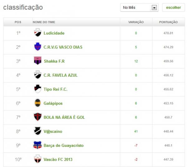 • 23/08/13Vasco é o 5º time com maior número de participantes no Cartola FC