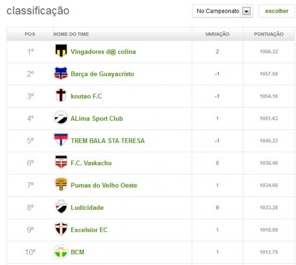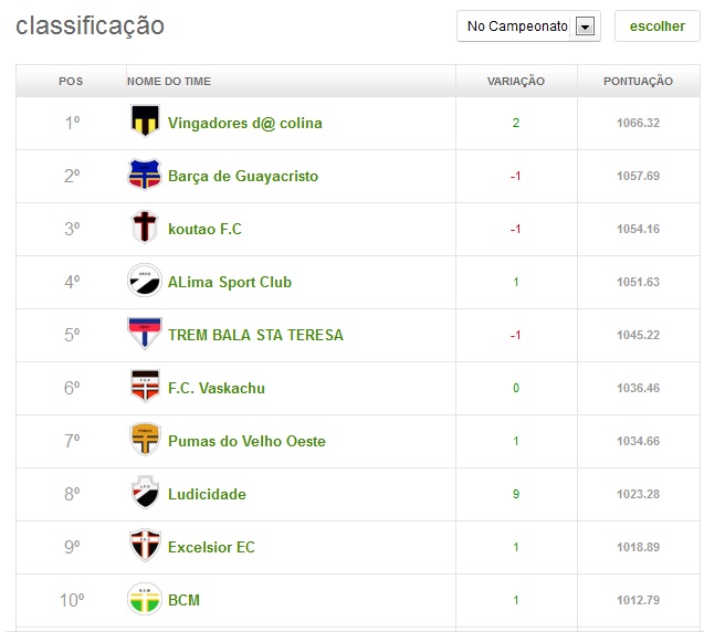 • 12/08/13Cartola FC: Confira a classificação da Liga NETVASCO OFICIAL