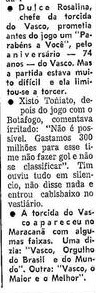 Na partida entre Vasco x Botafogo, Dulce Rosalina Chefe da Torcida Organizada do Vasco, prometia antes do jogo um “Parabéns a você” pelo aniversário de 74 anos do Vasco.
