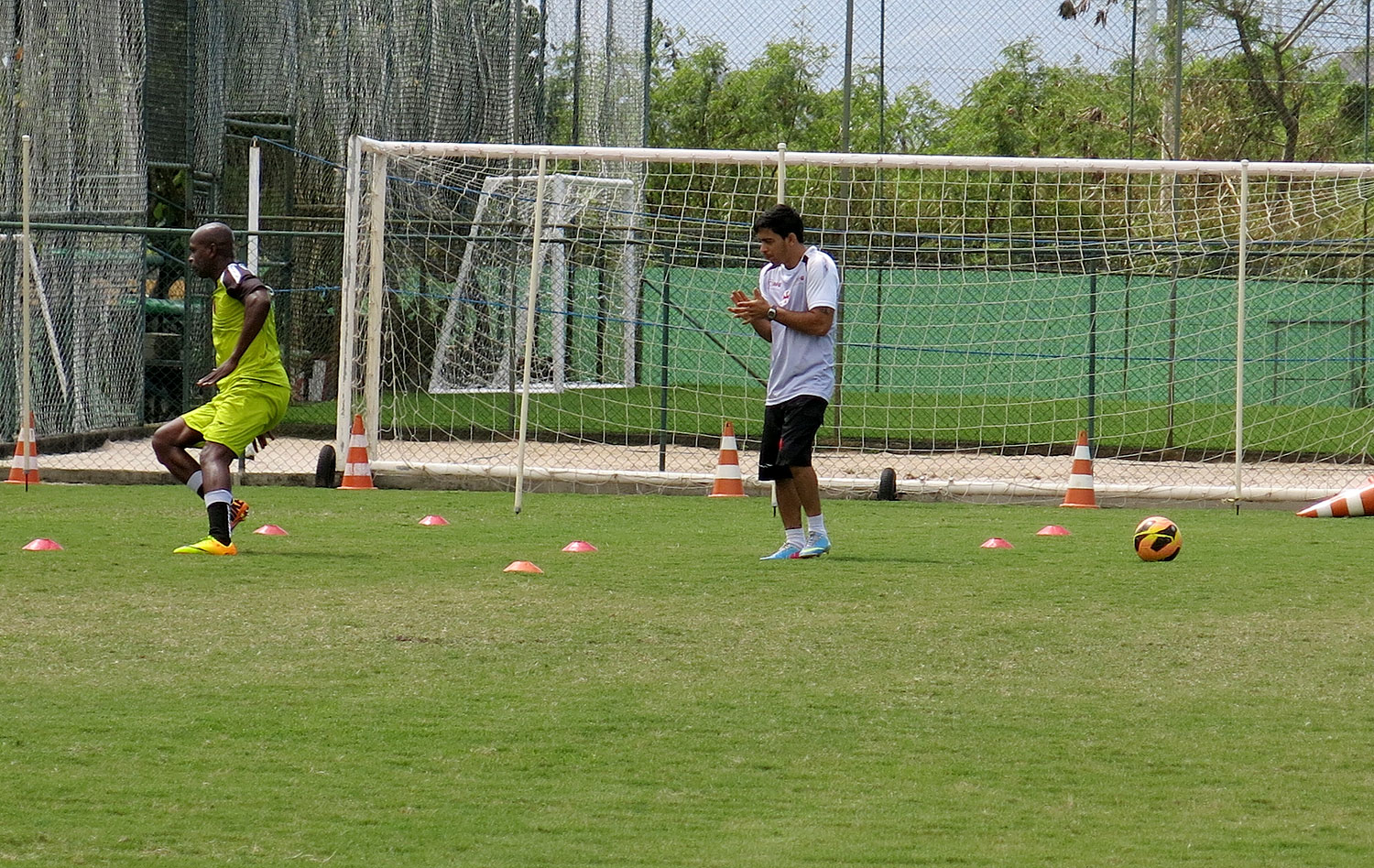 ![]() Willie bate bola com o afilhado Cassiano antes do início do treino do Vasco no CFZ |
