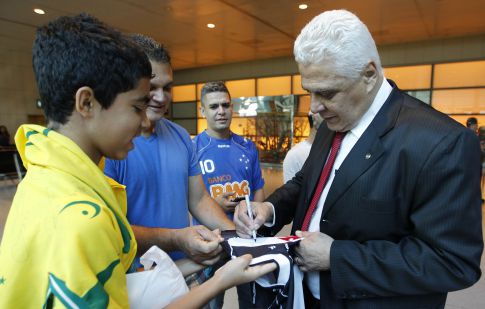 O presidente do Vasco, Roberto Dinamite, é o chefe da delegação e foi também muito assediado pelos torcedores na chegada a Boston.