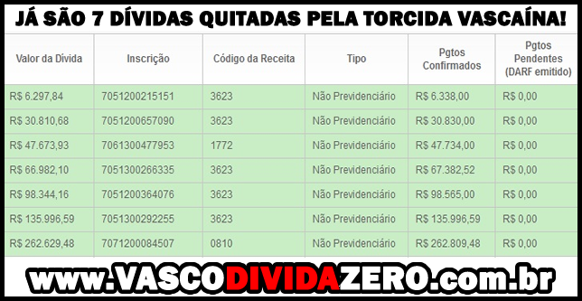 Vasco Dívida Zero PARABÉNS, TORCIDA VASCAÍNA! Já são 7 dívidas quitadas. #VascoDívidaZero #VDZ #Vasco www.vascodividazero.com.br