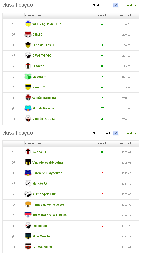 Confira, abaixo, a classificação (por mês e por campeonato) da Liga NETVASCO OFICIAL. Para participar, clique aqui.