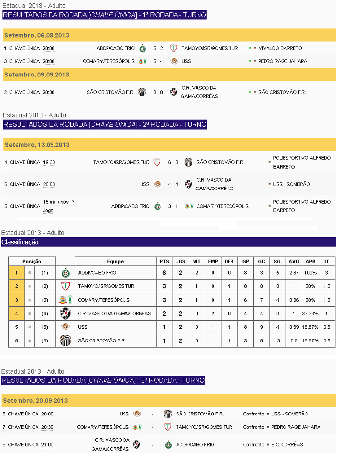 Tabela do Campeonato Estadual 2013