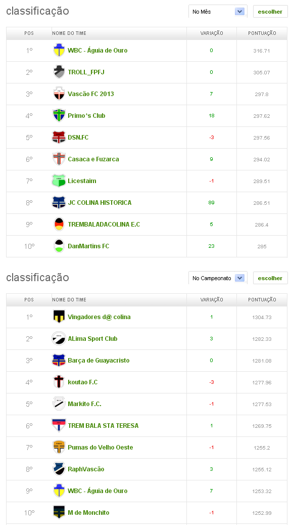 • 12/08/13Cartola FC: Confira a classificação da Liga NETVASCO OFICIAL