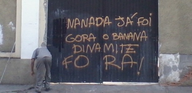 A crise no Vasco causou um dano ao patrimônio do clube na manhã desta terça-feira. Insatisfeitos com a campanha do time no Campeonato Brasileiro, vândalos picharam o muro do estádio de São Januário com ataques ao presidente Roberto Dinamite. As frases "Fora Dinamite" e "Fora Banana" foram vistas próximas ao portão 17.
