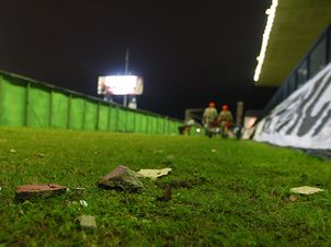 Assim que o reboco caiu no campo, alguns funcionários do clube tentaram limpar o local rapidamente, mas a cena foi logo observada pelos bombeiros. Pouco depois, integrantes do Corpo de Bombeiros chegaram ao local do ocorrido, acompanhados pela Polícia.