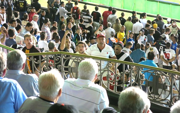 Com gritos pedindo reforços e também de "time sem vergonha", que ecoou em meio à hostilidade logo que os baianos marcaram o segundo gol, os torcedores, em maior parte de organizadas, se comunicavam e se dividiam entre os portões da presidência e das ruas atrás de São Januário. Às 23h, todos finalmente conseguiram deixar o estádio.