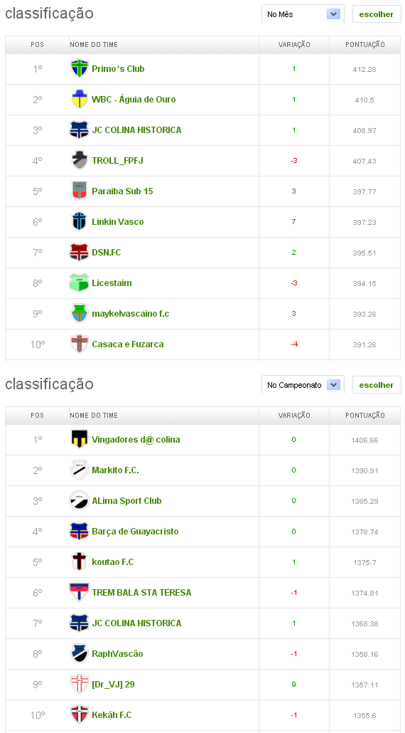 Confira, abaixo, a classificação (por mês e por campeonato) da Liga NETVASCO OFICIAL. Para participar, clique aqui.