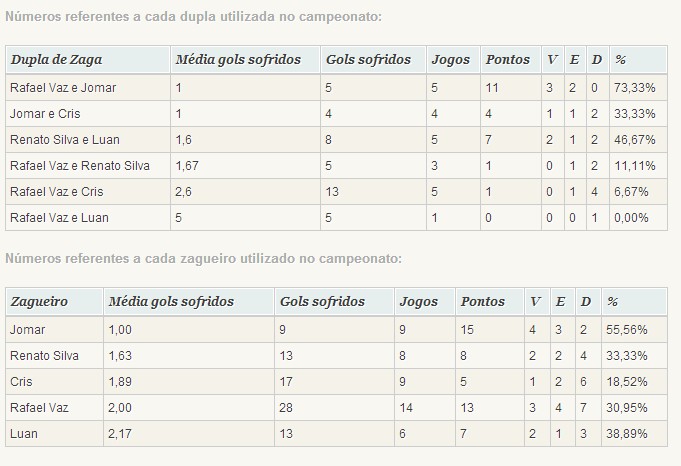 *A dupla Luan e Rafael Vaz atou apenas uma vez cada. Seus números, portanto, devem ser olhados com essa ponderação (facilidade de distorção da média, para cima ou para baixo).