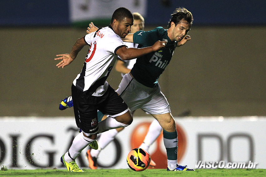 A maior posse de bola, no entanto, não foi traduzida em vantagem. Ora por adiantar demais a bola, ora por errar o último passe, o Vasco perdeu chances e parou em Renan. Enquanto isso, Jomar e Walter travam duelo ríspido, com várias faltas do zagueiro, que tentava desestabilizar o rival. A única grande oportunidade foi de Roni, que, cara a cara com Michel Alves, chutou por cima do gol, aos 38 minutos. O lance deu um gás ao Esmeraldino, que equilibrou as ações.