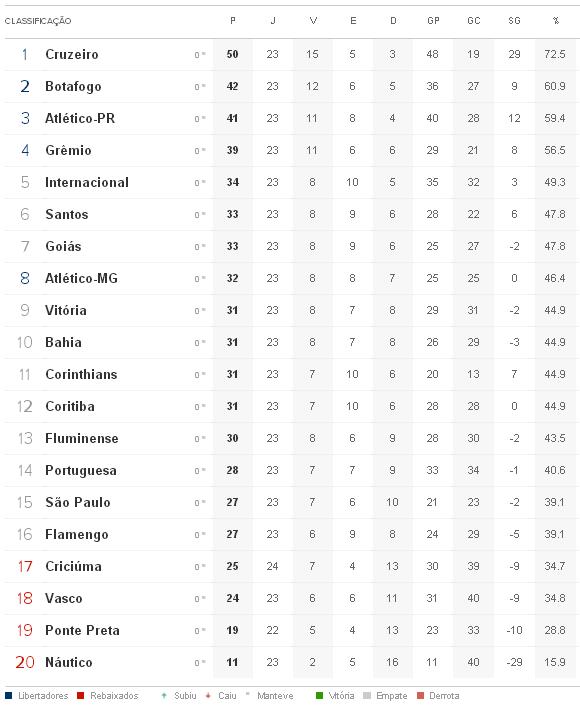 Dois jogos movimentaram o Campeonato Brasileiro nesta 4ª-feira (25/09). No Heriberto Hülse, o Criciúma empatou com o Atlético-MG por 1 a 1 e ficou 1 ponto na frente do Vasco, sem alteração nas colocações. Na Vila Belmiro, o Santos empatou com o lanterna Náutico também por 1 a 1.
