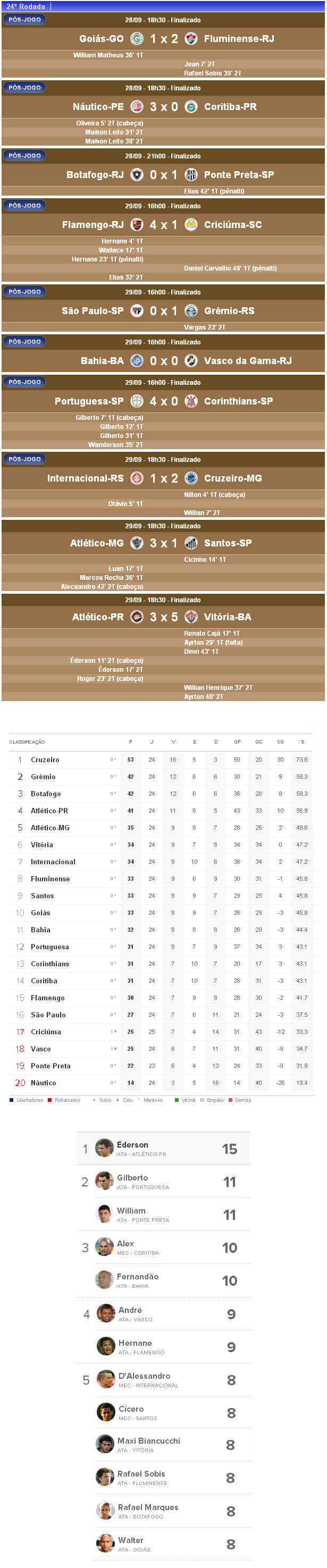 Nem todos os times têm o mesmo número de partidas devido a antecipações e adiamentos de jogos. A partida pendente Atlético-MG x Ponte Preta, cujo resultado interessa ao Vasco, será realizada na próxima 5ª-feira (03/10).