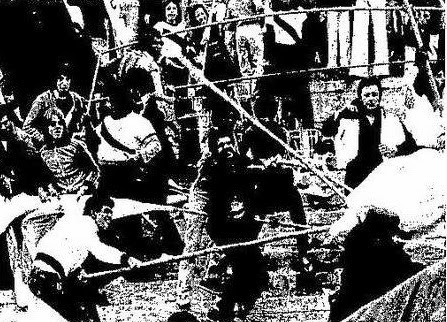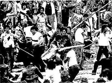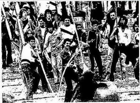 Estes tentaram resistir, usando os paus de suas bandeiras rasgadas e atiradas para o ar.